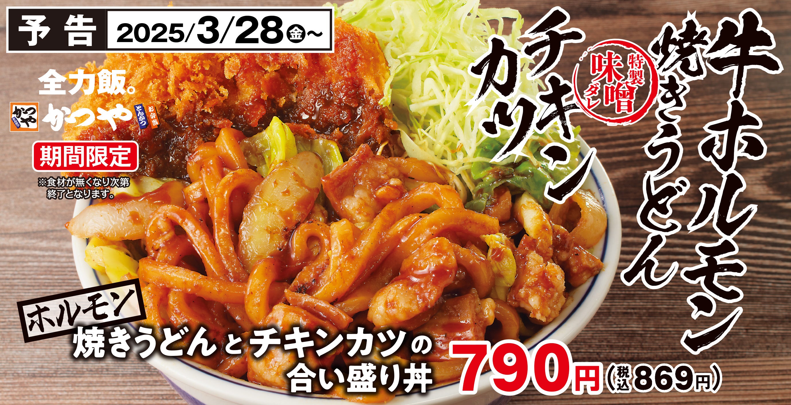 アークランドサービスホールディングス株式会社のプレスリリース(2025年3月25日 10時00分)【炭水化物2階建て】新年度も全力飯。「ホルモン焼きうどんとチキンカツの合い盛り」かつやに新登場!